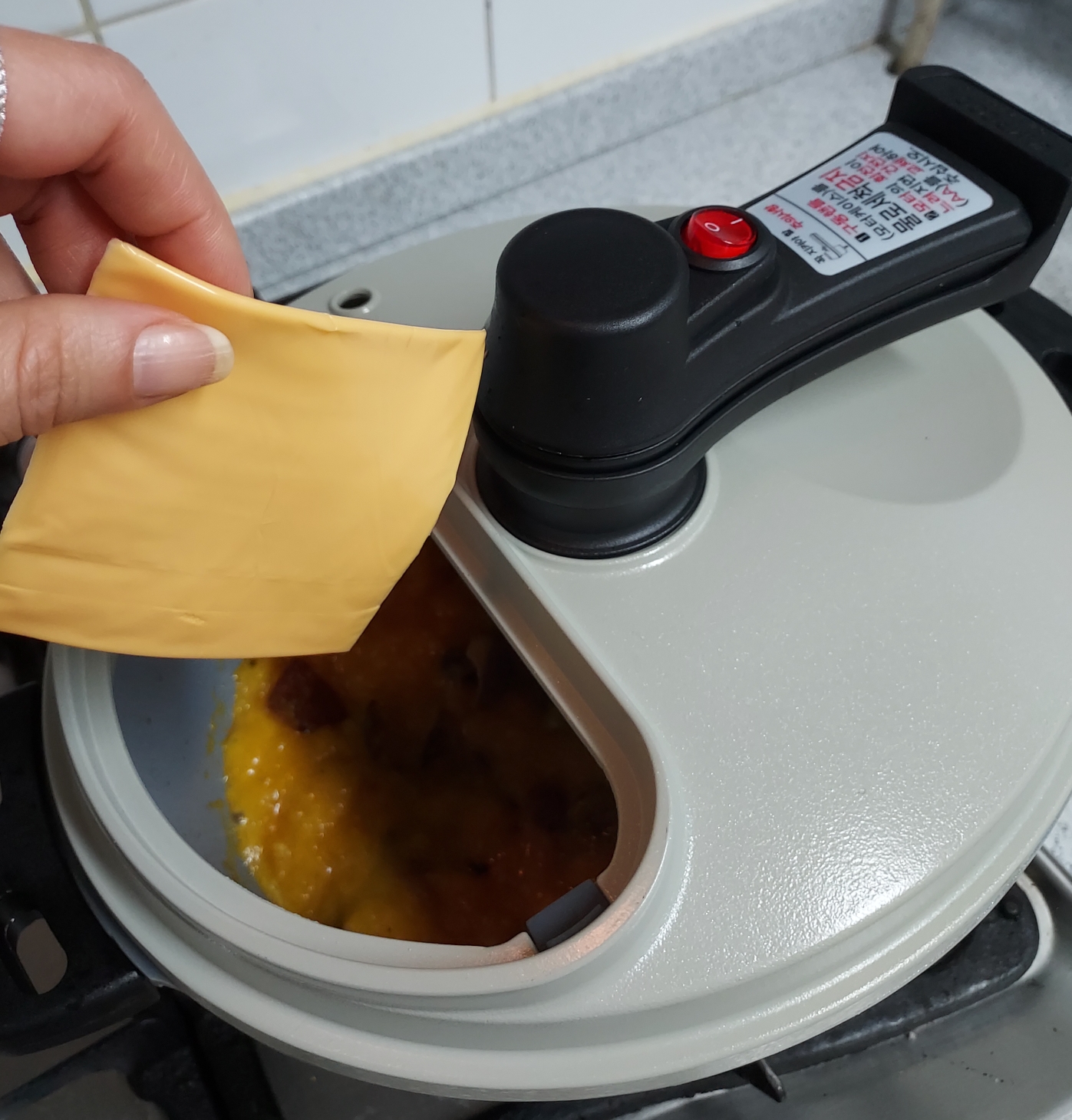 회전 정치, 음식 재료 넣은 후 뚜껑을 덮고 빨간색 스위치를 켭니다.