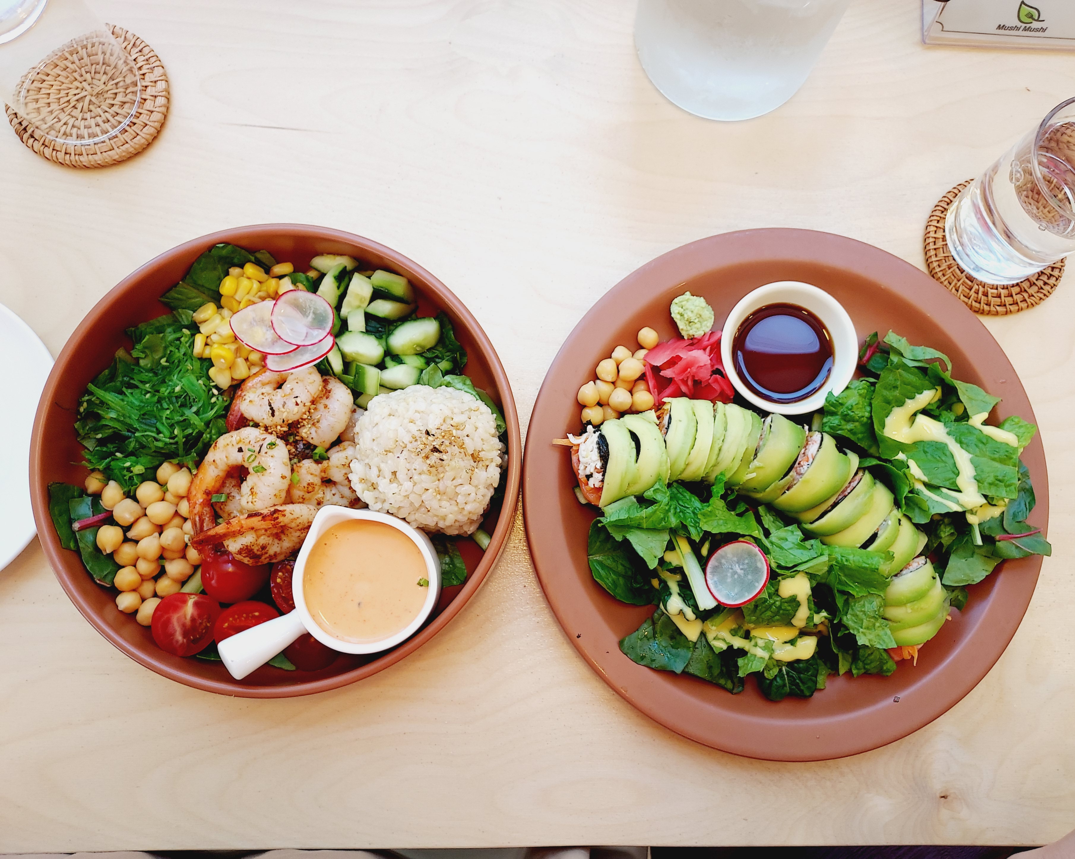 흑미와 현미를 사용하고 샐러드를 곁들여