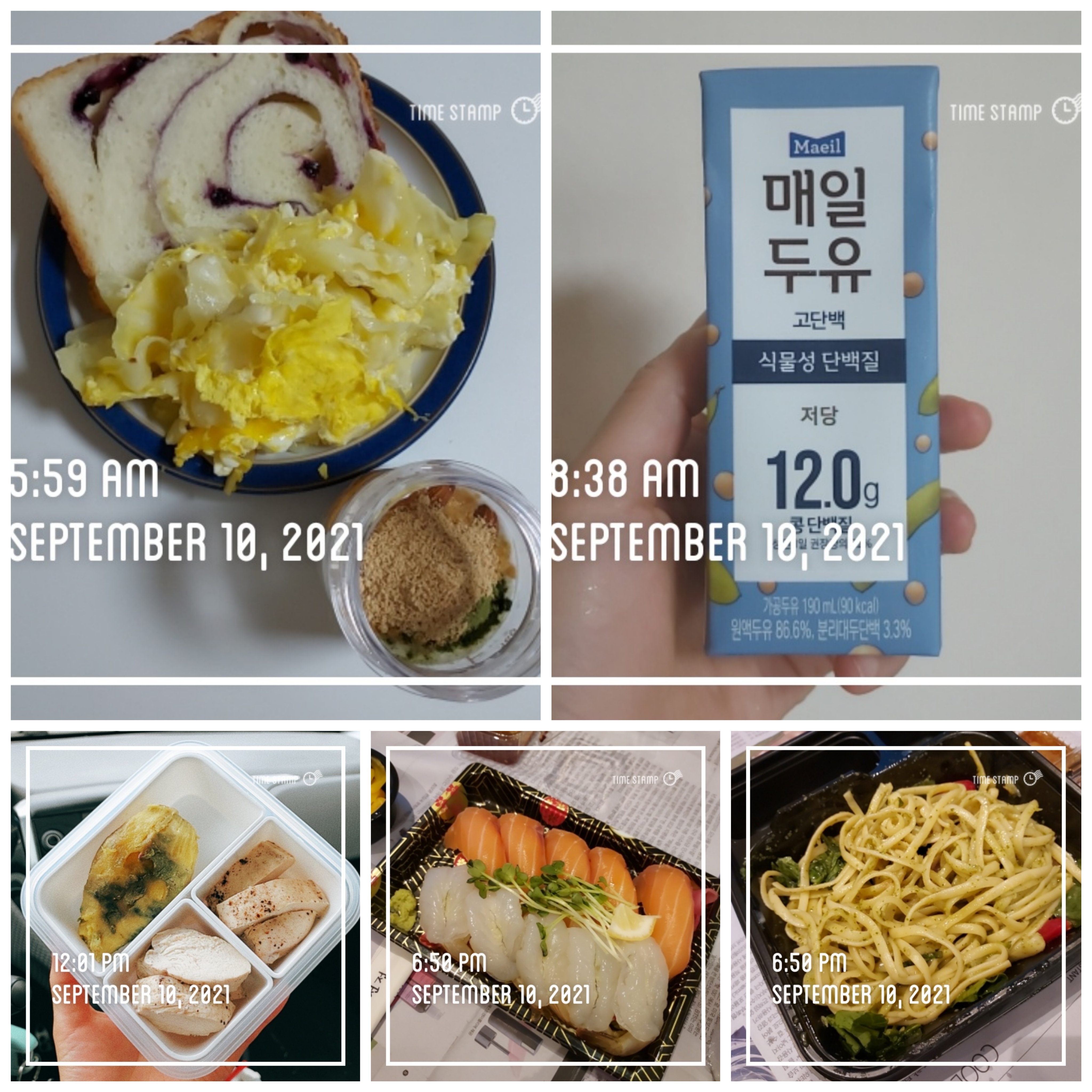 6시 식빵2장, 계란후라이2개, 양배추, 요거트, 아몬드, 아메
