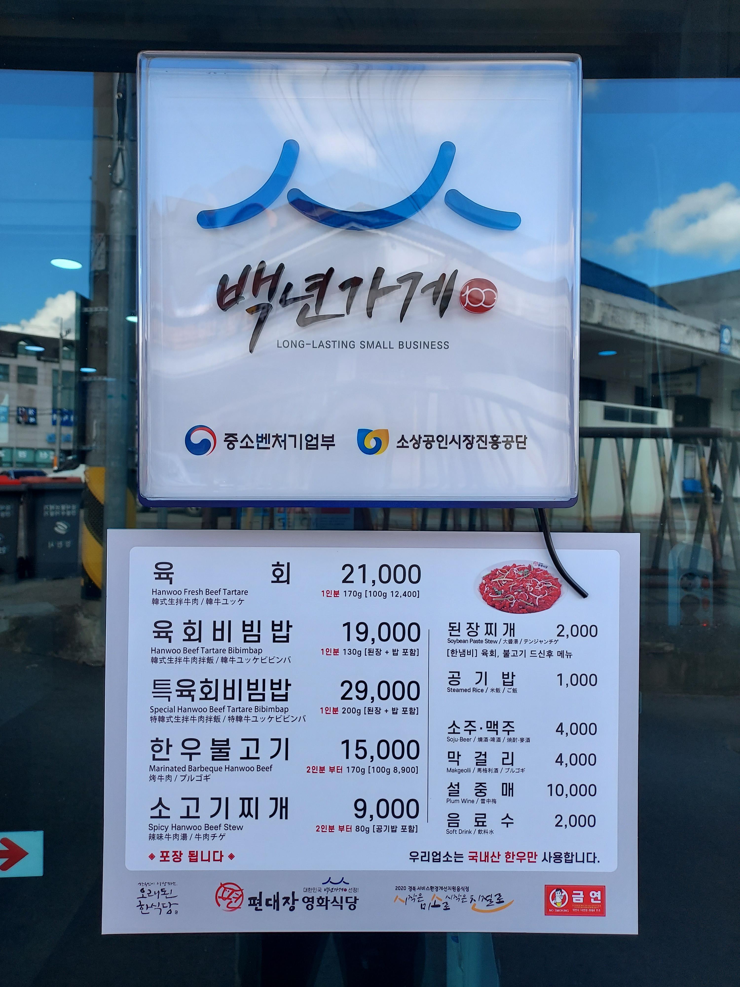 영천에 맛집을 검색하니 편대장 영화식당이 뜨더라고요. 프랜차이즈로 전국에서 많이 본 가게인데 육회비빔밥으로 유명해서 찾아가 봤어요. 다이어트 유지 식단으로 크게 나쁘지 않다고 생각해서 먹어 봤는데 비싼 감이 있지만 맛있더라고요. 된장찌개가 포함된 육회 비빔밥이 19,000원인데 저는 이 집의 밑반찬이 되레어 맛있었습니다.