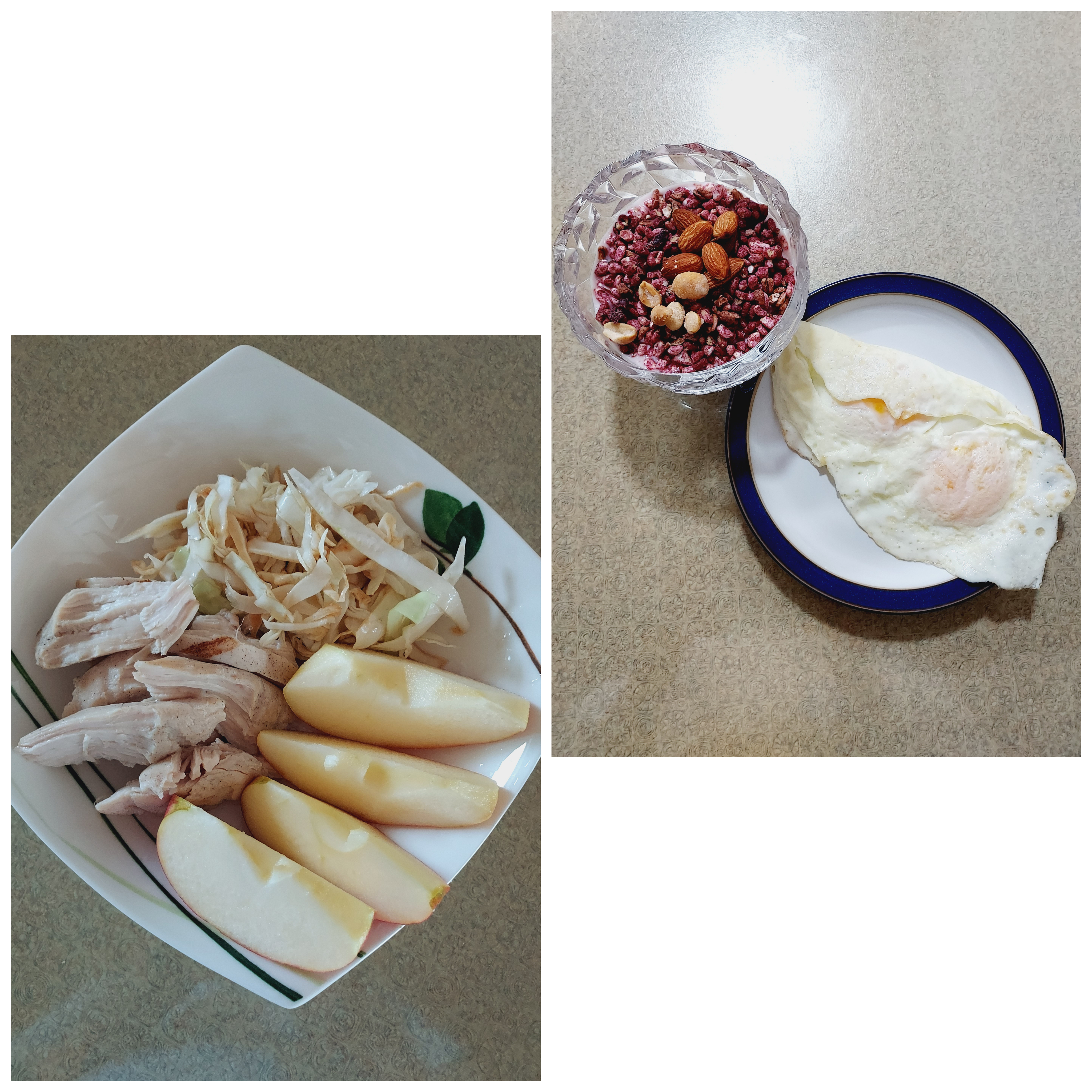 10시 사과, 닭가슴살, 양배추, 양배추바나나팬케이크