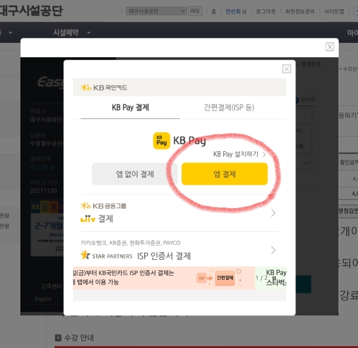 여기서~ 대구시설공단이 아니라 KB PAY 앱을 실행 해 주세요.