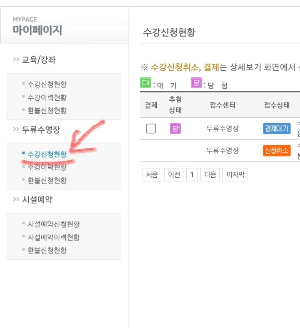 왼쪽편에 두류수영장 수강신청현황을 선택하세요.