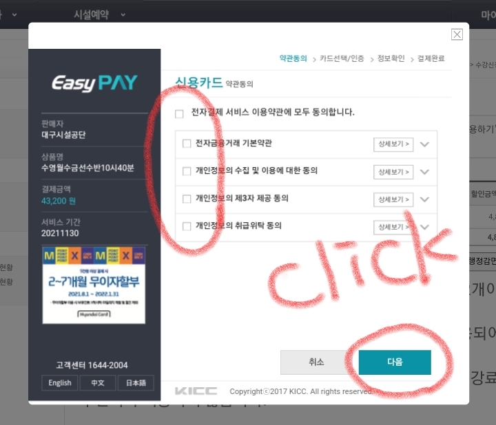 공란에 체크하시고 저는 국민카드로 진행해요. 다음!!!!